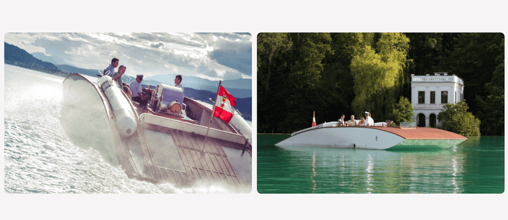 Speaking of water related programs, there is one boat tour that definitely fits the unique experience criteria and can be a highlight of a small, VIP group’s itinerary. It is a tour on Wörthersee on board the replica of the world’s first air-cushion boat (Hovercraft). The original boat was built in 1915 by an Austrian gentleman named Dagobert Müller von Thomamühl, had an impressive top speed of over 32 knots ( 59 km/h) and was even armed with torpedoes and machineguns. Luckily though, it never saw really combat. Today, the replica – called Leadership- has no intention of doing military service: it was solely built for entertainment purposes. Being a part of history, the tour includes a presentation of the boat including the story behind it along with a speed ride and manoeuvering, fuelled by the 16 cylinders, invigorating vibrations and sound it produces, making the whole experience truly unforgettable. Being a relatively small boat, it does have a limitation of maximum capacity for 10 persons, making it suitable for small (VIP) groups.